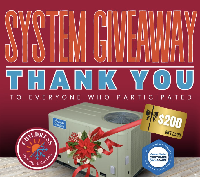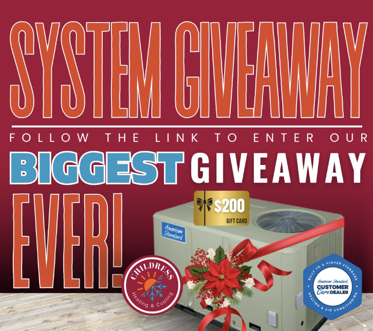 We believe in the strength of our community and the importance of giving back. That’s why we are excited to continue our Childress Gives Back, our annual HVAC System Giveaway program, designed to provide comfort and warmth to our community.